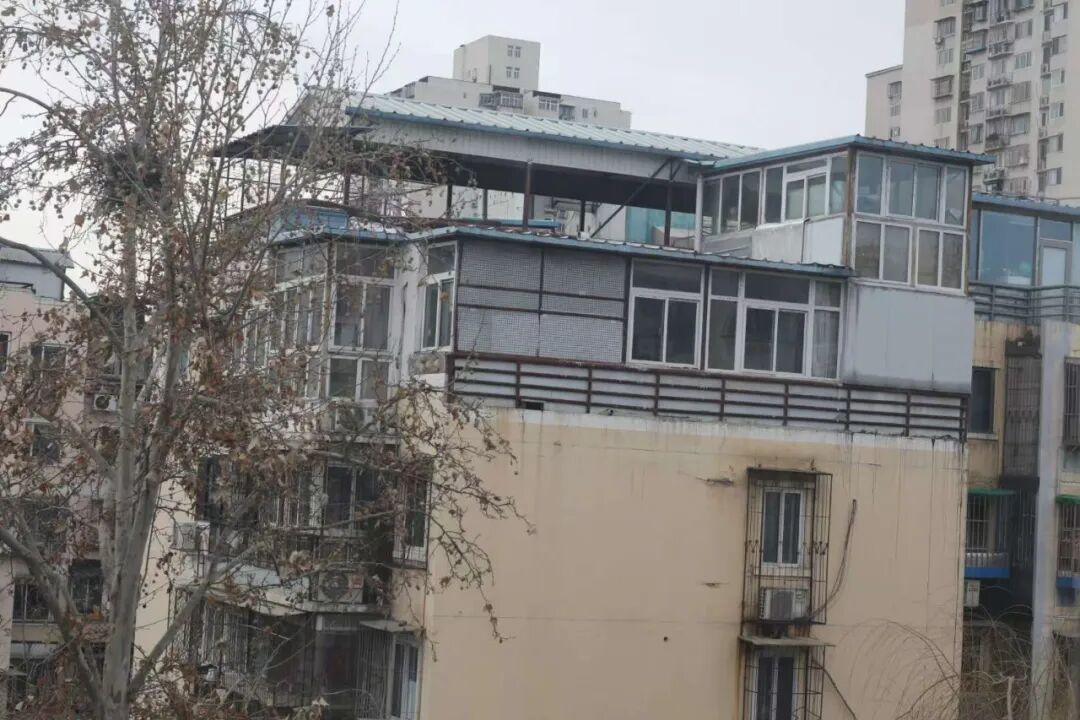 而在当时的社会背景下,相关部门监管力度相对薄弱,居民的合规意识、规划意识也比较淡薄,在开发商的引导下,小区内顶楼的住户陆续将北侧的开放式阳台进行了封闭,这也为后续的违建扩建埋下了隐患。